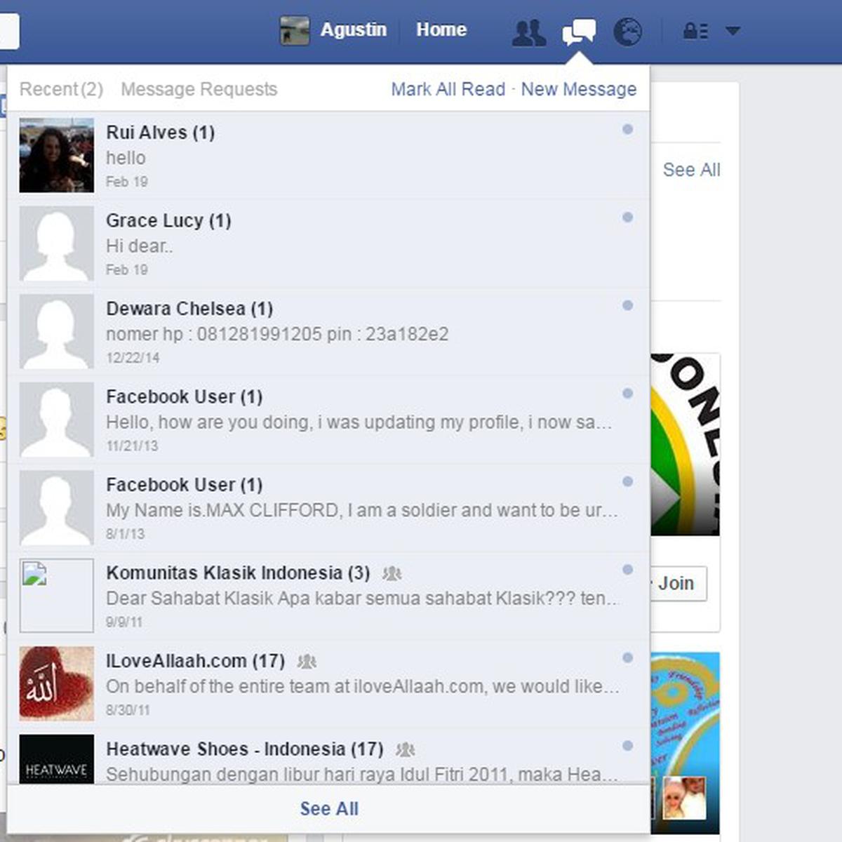 Jika hasil pencarian sudah muncul selanjutnya tap pada hasil pencarian teratas. Untuk dapat mengembalikan pesan inbox facebook yang terhapus anda dapat mengikuti penjelasan di bawah ini. Jika ingin melihat semua pesan yang pernah diterima silakan centang bagian pesan dan bagian lain tidak perlu bila memang tidak dibutuhkan.
